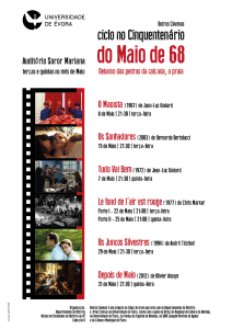 No âmbito de uma iniciativa conjunta dos "Outros Cinemas", o Departamento de História e o NEHAUE Núcleo de Estudantes de História e Arqueologia da Universidade de Évora, durante o mês de Maio irá decorrer o Ciclo de Cinema dedicado ao Cinquentenário do Maio de 68 com projecções às Terças-feiras, como habitualmente, e também às Quintas-feiras. As sessões terão lugar às 21:30.